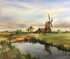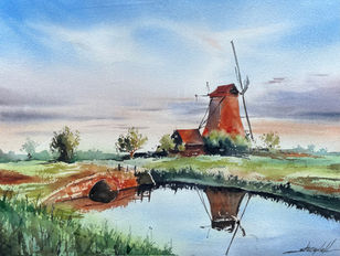 Eine alte Mühle in den Niederlanden. Ein schrittweises Kunstwerk, das auf einer Kombination aus sanften Übergängen, Farbverläufen und Kontrasten basiert. Diesmal werden wir zudem besonders auf die Details achten.
